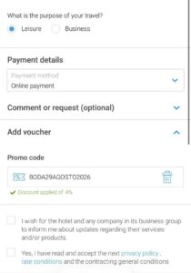 Bei der Buchung direkt bei deren Website, in diesem Feld den Rabattcode angeben: